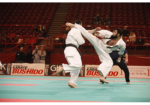 Greg Bouchelaghem, ceinture noire de Karaté et de Jiu-jitsu brésilien, ancien du combattant du Pride est en compagnie de Djema Belkhodja, 12x champion de France et Vice-champion du monde de Karaté Kyokushinkai toutes catégories de poids.