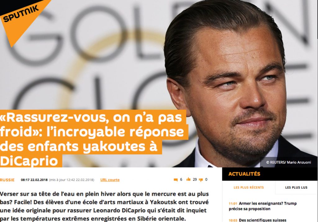 Alors que la France va vivre une grande vague de froid la semaine prochaine, les températures affichées en Sibérie sont simplement extrêmes. Très actif sur la plan humanitaire, le célèbre Leonardo DiCaprio s’est inquiété sur le sort des habitants de cette région connue comme étant l’une des plus froide du monde. Pourtant, les -62° C[…]