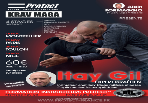 Alain Formaggio, 6ème Dan, expert fédéral vous propose 4 STAGES KRAV MAGA avec Itay Gil (Instructeur en chef Krav-Maga militaire et police, capitaine des forces spéciales). Alain Formaggio Représentant France de Protect Israeli Security Solutions. Protect est sous le leadership et la direction d’Itay Gil, qui injecte dans l’organisation les fruits de toute une[…]