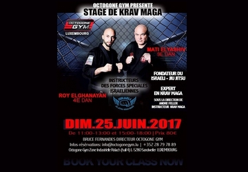 Le dimanche 25 juin 2017, l’Octogone Gym ouvre ses portes de 11h à 18h pour accueillir un stage de Krav Maga. Le stage se fera sous la direction d’Andre Feller, instructeur avancé en Krav Maga. Pour cet événement, l’Octogone Gym aura également le plaisir de recevoir les instructeurs des forces spéciales israéliennes : Roy Elghanayan, 4e[…]